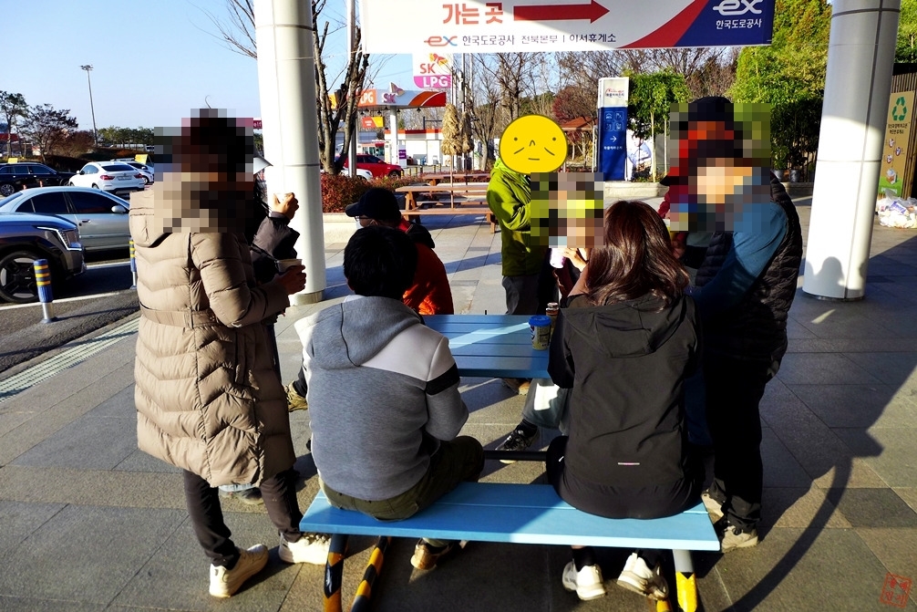 고속도로 이서 휴게소에서 음료 한잔씩 하다.