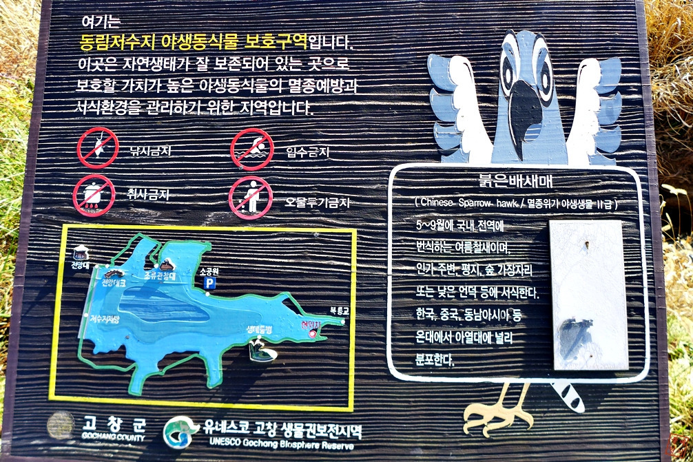 고창 동림저수지 둘레길 곳곳에 안내 이정표는 있지만 실제 탐방로는 원시 자연상태에 가깝기에 독도법 상급 실력 요함. 이곳 일부 주민들이 동절기 11월 ~2월 고병원성 조류독감 방역이란 이유로 탐방객 출입에 대해 비협조적임.