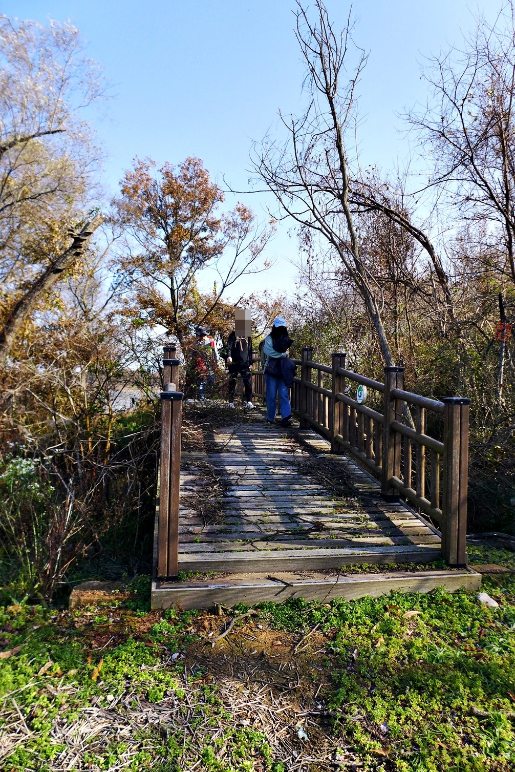 데크다리에 온갖 나무가 자라서 지나가기가 쉽지 않다.