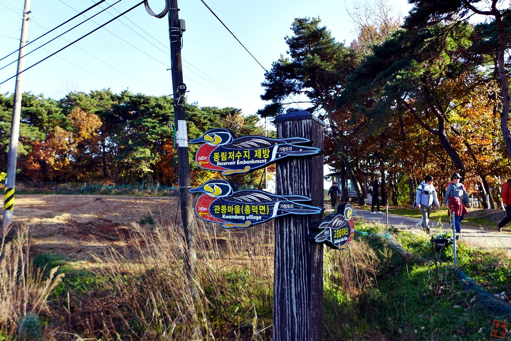 동림저수지 제방 이정표 방향으로 진행.