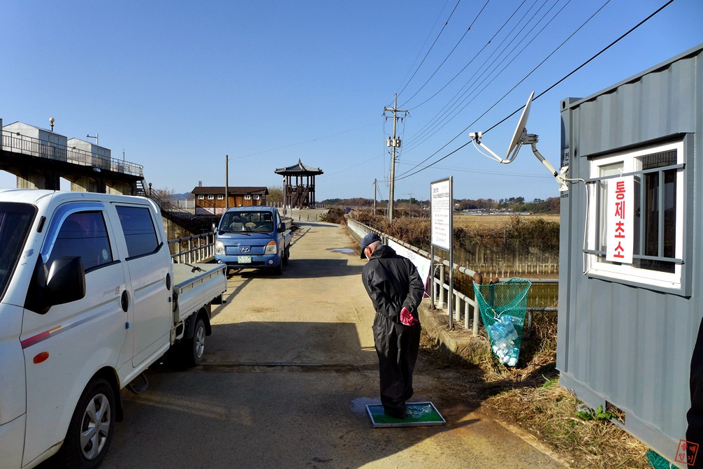신성교를 건너려고 하니 이곳 주민으로 보이는 분이 고창군에서 조류독감 관련하여